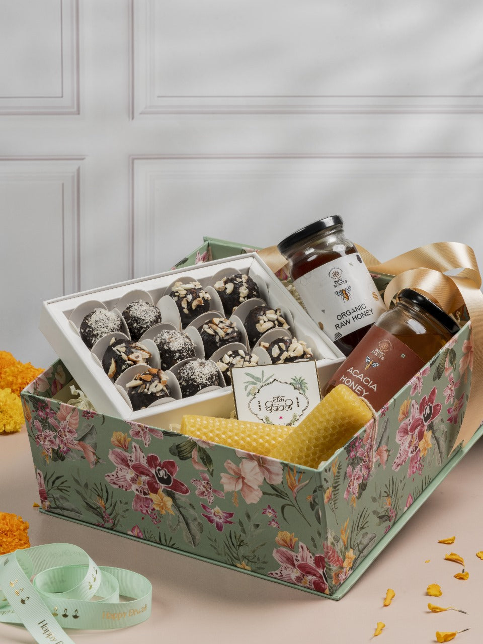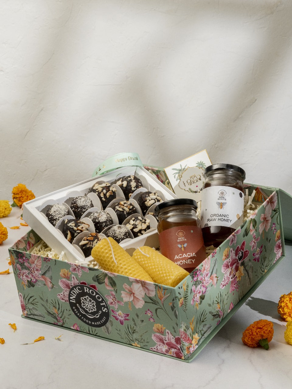 This festive hamper brings together age-old favourites with a wholesome twist. From nutrient-rich laddoos to golden honey and warm candlelight, every element is chosen to make your celebrations brighter and healthier.
